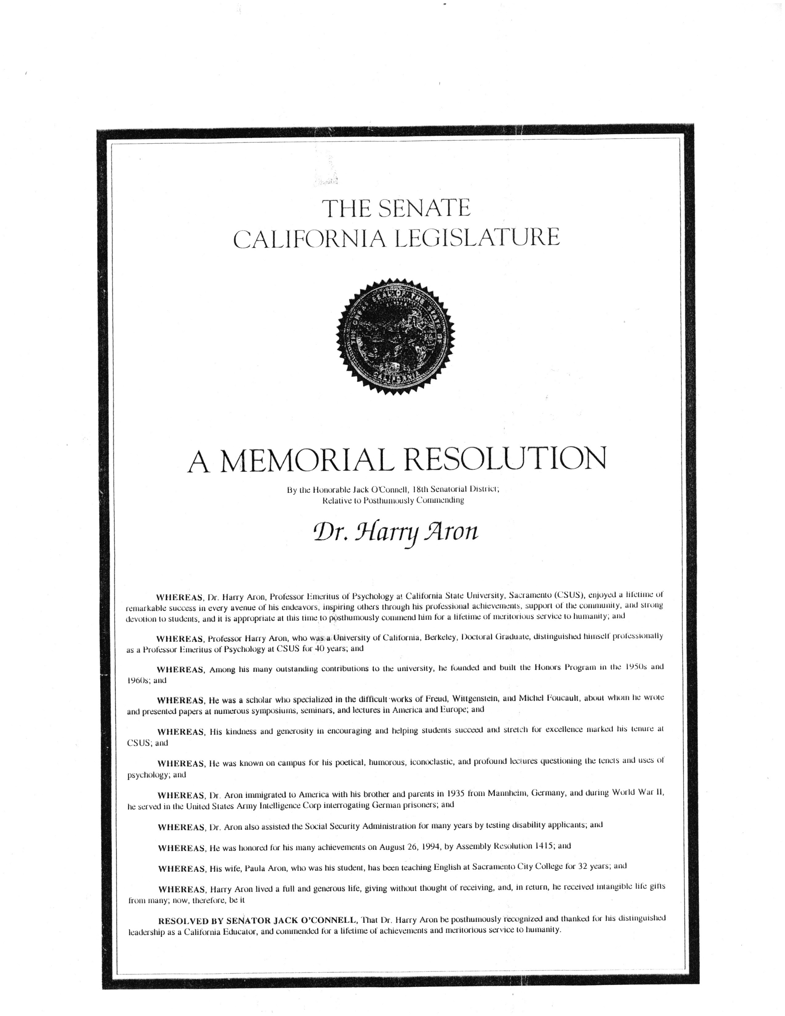 Posthumous Memorial Resolution